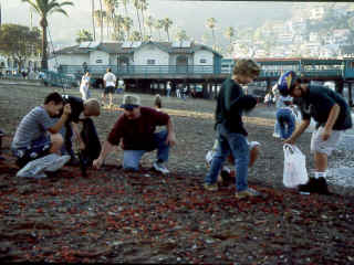 Day 19 Wednesday, December 31, 1997Santa Catalina IslandI go ashore around 10 a.m. for a waffle brunch. In the early afternoon, I join Ashikin on a glass bottom boat tour... ...and after that, an inland bus tour. We're in luck, because we're blessed with an unusually large number of buffalo sightings -- they hadn't seen any at all for the last several days. The buffaloes were originally introduced to shoot a film, but it was later moved to Arizona and the buffaloes left behind. The island itself is still owned to 99% by the Wrigley family. The inland is a nature preserve controlled by the Catalina Conservancy on a 50-year contract and very few vehicles have access to it. Back in town, I call home since it's now 1998 in Sweden. Hi Mom, Hi Dad, Happy New Year to you both! I also call United to reserve a seat for my return trip and buy a ferry ticket.
